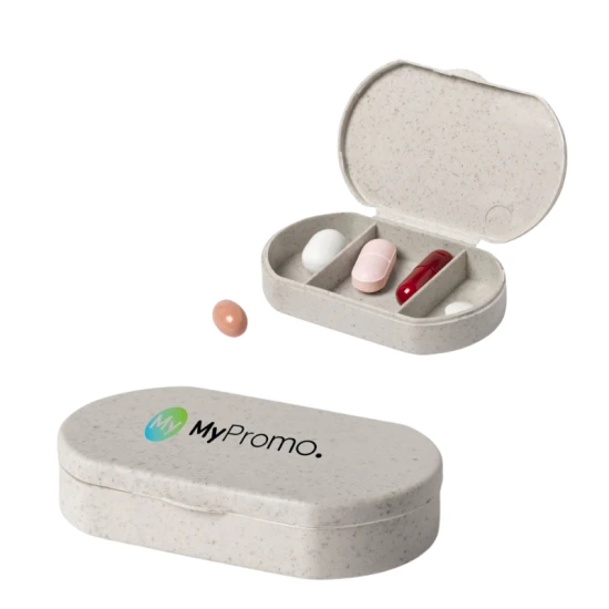 Pillbox in nature line, made of bamboo fibre, with 3 compartments and safety closure.