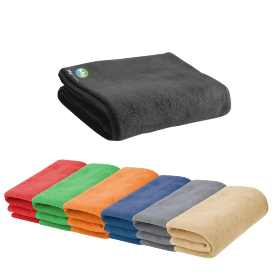 Blanket of 120x150cm in a varied range of bright tonnenees. In polar fleece material of 180g/m2 with anti-pilling treatment.