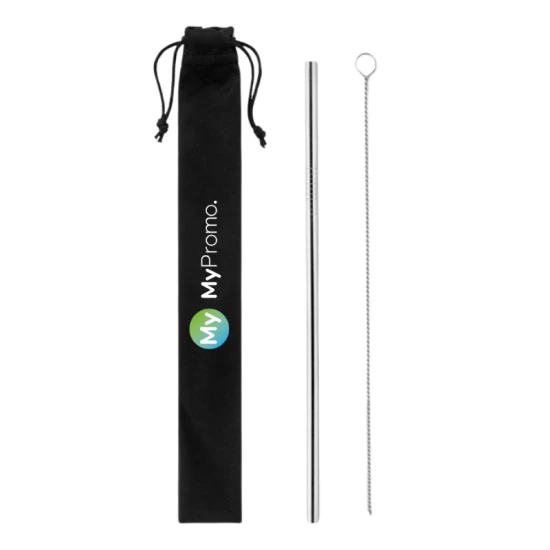 Set of 1 reusable stainless steel drinking straws and cleaning brush in microfibre pouch.