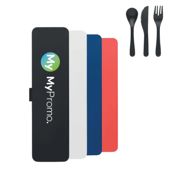Re-usable PP portable cutlery set and case. Includes spoon, fork and knife.