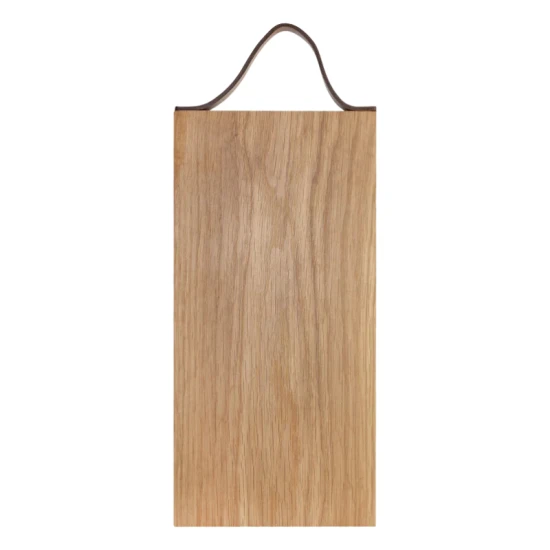 The oak cutting board with a leather handle is a stylish and functional kitchen accessory, perfect for serving appetizers, cheese, and other delicacies. Made from high-quality oak wood, it is durable and sturdy, while the full-grain leather handle adds a luxurious touch and comfortable grip that improves over time. This combination of wood and leather gives the board a warm, timeless look, making it a standout piece for both casual and formal occasions. To maintain its condition, clean with a damp cloth and regularly apply oil or wax for long-lasting use.