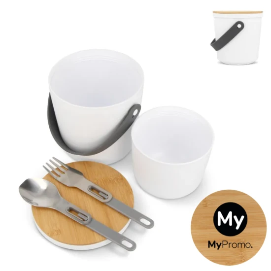 Lunch container | Bamboo & Recycled PP | 90cl | Incl. carry handle and cutlery