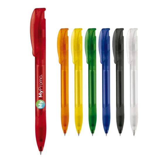 Modern designed Toppoint ball pen with bowclip and rubbergrip. Synthetic jumbo refill. Frosty.