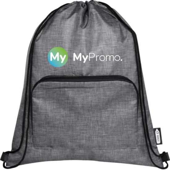 Foldable drawstring bag | Recycled polyester | 7L | With zippered front pocket | heather grey;solid black 6397086