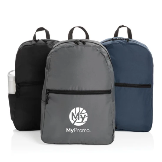 No greenwashing, but telling a true story about sustainability! This Impact 300D RPET backpack is made with AWARE™ tracer. With AWARE™, the use of genuine recycled fabric materials and water reduction impact claims are guaranteed, by using the AWARE disruptive physical tracer and blockchain technology. Save water and use genuine recycled fabrics. With the focus on water 2% of proceeds of each Impact product sold will be donated to Water.org. Keep it simple and stylish with this basic backpack. A perfect size for all your essentials and a convenient front zipper pocket. This backpack has reused 11,5 500ml PETbottles and saved 6,85 litres of water. Water savings are based on figures when compared to conventional fibre. This calculated indication is based on reliable LCA data as published by Textile Exchange in their Material Snapshots 2016.