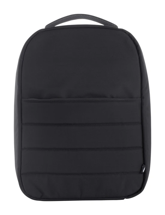 Fully padded RPET backpack with zipped compartments, padded laptop (15") and tablet (12") compartment, trolley strap, ergonomic back and shoulder straps. With hidden anti-theft pocket. 300D RPET polyester. With distinctive RPET label.