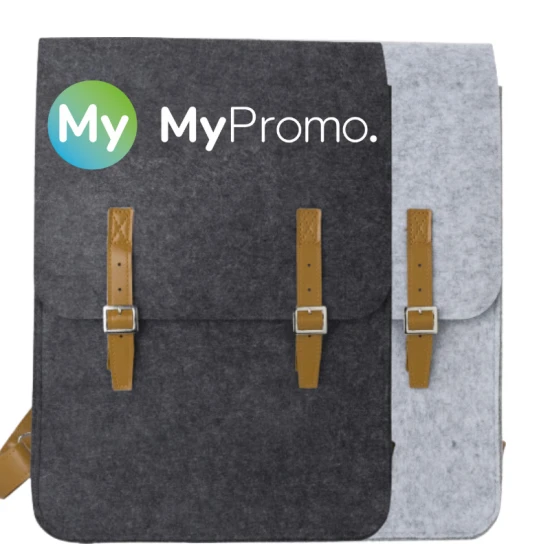 RPET felt backpack with PU details. One large and one smaller pocket on the front. The bag is closed with two buckles.