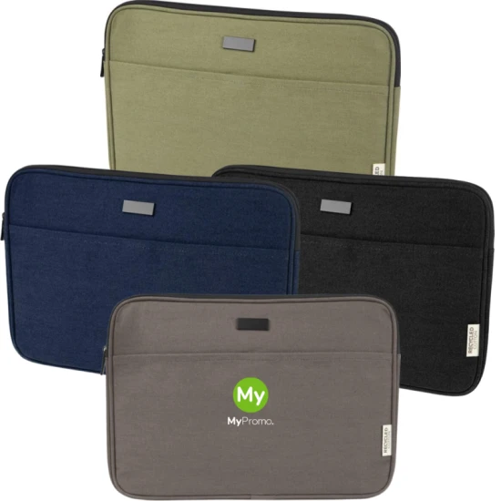 Composed with highly durable and sustainable materials, GRS recycled canvas and GRS RPET lining, the Joey 14" laptop sleeve features a protected laptop compartment, and an open front pocket with hook & look closure. The decorative metal plate can make a logo shine through its subtle and matte finish. 80% GRS certified recycled cotton and 20% Cotton, 330 g/m2.