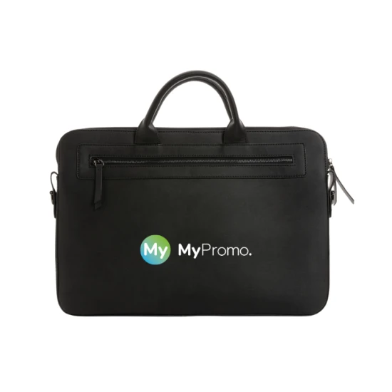 The Swiss Peak GRS recycled PU 14 inch laptop bag breathes modern luxury with a smooth finish in a rich black hue. Includes a detachable strap with dark coloured hardware and two front zipped compartments. Made with GRS certified recycled materials. Made from 100% GRS certified PU. GRS certification ensures a completely certified supply chain of the recycled materials. Total recycled content: 61% based on total item weight. PVC free.