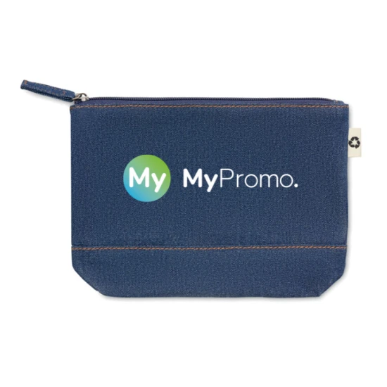 50% Recycled cotton dye denim and 50% cotton cosmetic pouch with zipper. 250 gr/m².