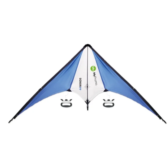 Delta kite in 210T Ripstop polyester with 2 handles. Presented in pouch.