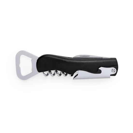 Corkscrew with bottle opener with accessories in stainless steel and body in a varied range of bright tonnenees. Presented in an individual box.