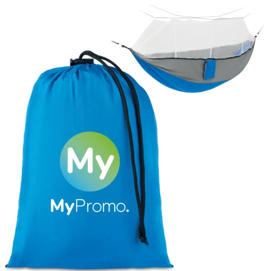 Hammock with integrated mosquito net. Made in lightweight and strong nylon material. For easy set up the strap and carabineers are included. This hammock can hold up to 200 kg.