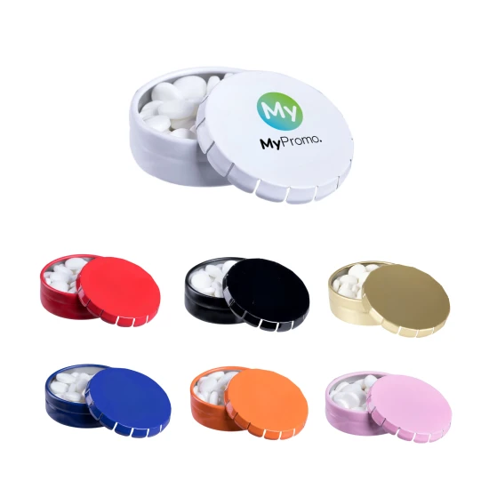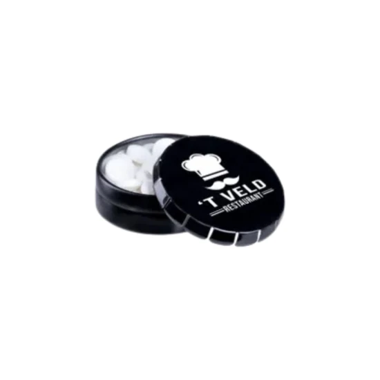 This Mini Box is a practical product, ideal for carrying menthol refreshments. It contains 12g of mints, ensuring fresh breath throughout the day. Its clic-clac closure is easy to open with one hand. Its compact and customisable design also makes it an excellent corporate gift or promotional item to convey a message of freshness and professionalism. Offer this clic-clac box to your clients or employees for effective advertising and daily utility. Contact our team if you would like sugarfree mints or sportlife mints.