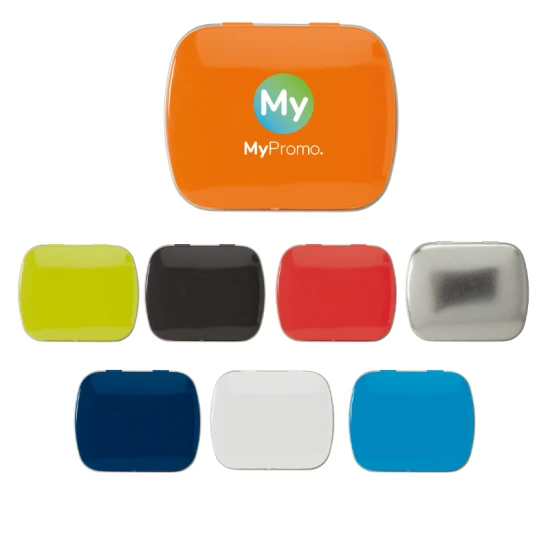 Square peppermint tin. Filled with 23 grammes of dutch peppermints. Not sugarfree.