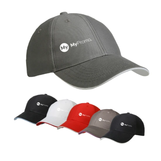 6 panel strap cap with front lining and contrast lining on closure. Medium profile. Metal buckle closure with grommet. In cotton, heavy twill