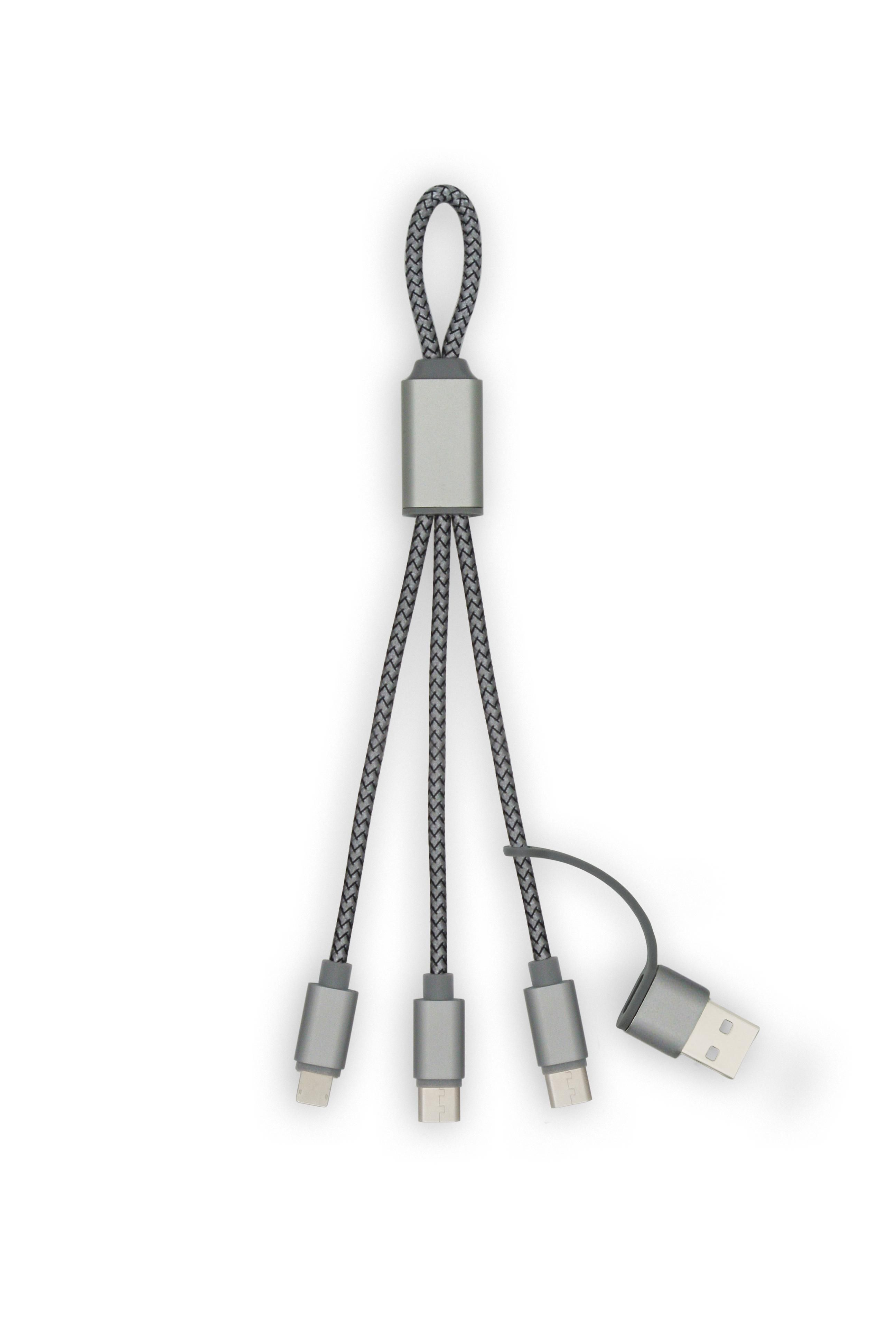 BrandCharger charging cable | Nylon, aluminium and rPET | 19 x1x19 cm | High-speed charging | gun metal 6450336