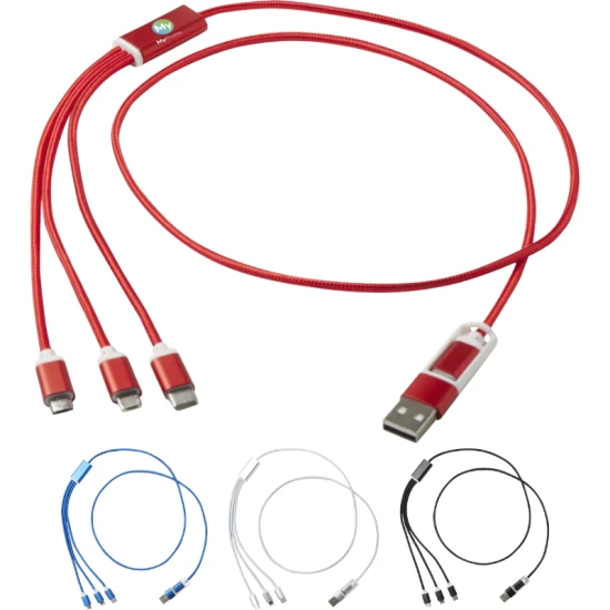 This cable features a USB-A and a Type-C input connector combined with a Type-C, a Micro USB and a Lightning/Micro USB combi output connector. Thanks to all these connectors you can charge most iOS/Android smartphones, cameras, power banks, and earbuds. The cable length is 100 cm and is made from recycled aluminium and RPET. Recycled Aluminium.