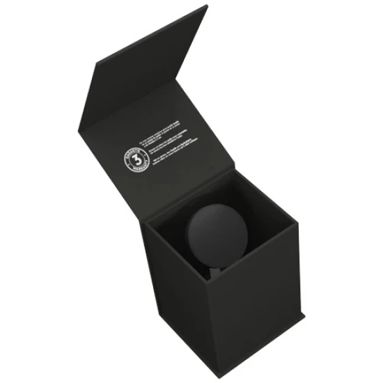 Magnetic light-up logo wireless charger with 2 separate induction outputs to charge 2 devices simultaneously. The round part is a magnetic 15W wireless charger. To take advantage of the 15W charging power, the charger needs to be connected with the supplied cable and to a wall adapter of at least 20W. The base is built with a USB-C input and output as well as a 5W induction output to charge an earbuds case (AirPods type). The charger comes with a magnetic sticker to ensure compatibility with all phones (device must be induction compatible). If the phone does not have MagSafe technology (starting iPhone 12), the sticker can be attached to the back of the phone to make it compatible with the magnetic holder. Delivered with a charging cable made from recycled PET. Charger size: 7 x 8 x 12.5 cm. Packed in a gift box (11 x 10 x 12.5) with magnetic closure. Includes 3 years warranty. ABS Plastic, Rubber, Recycled PET Plastic.
