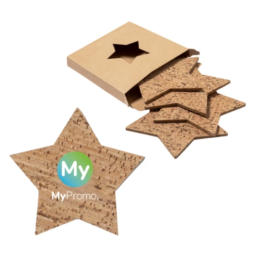 Coaster | Natural cork | Star shape | Set of 4 | 6412263