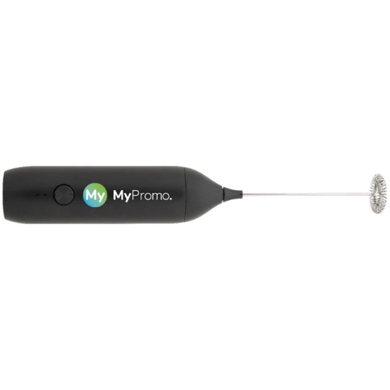 Electric handheld milk frother in recycled ABS housing with matt finish. With built-in USB rechargeable battery (500 mAh). Including USB-C charger cable.