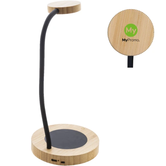 Bamboo multifunctional desk lamp with built-in mug warmer. With warm, natural and cool light modes. Including USB charger cable.