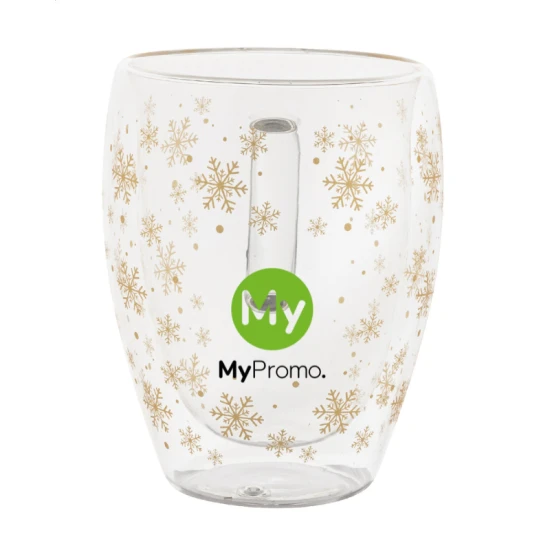 Double-wall, borosilicate glass thermo mug with Christmas snowflake design, 350 ml. In kraft paper box.