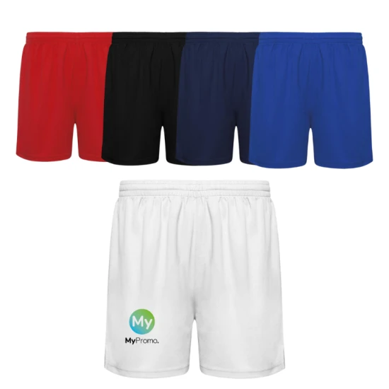 Sports shorts without inner slip and ajustable elastic waist with drawcord. Breathable piqué fabric, easy to wash and dry. Removable label. Technical fabric. Piqué knit of 100% Polyester, 140 g/m2.