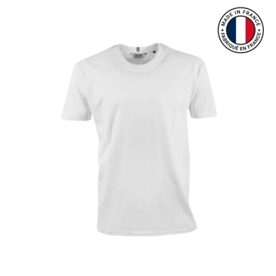 Discover our premium round neck t-shirt, crafted from 240g/m² organic cotton for ultimate comfort and durability. Made in France, this t-shirt features a stylish puce blue color with white and red accents. Available in sizes from S to XXL, it offers a perfect fit for everyone. The round neck is finished with a 2x2 ribbed edge, and double stitching at the bottom of the sleeves and body ensures long-lasting wear. A white cleanliness strip on the inside adds a touch of refinement.
