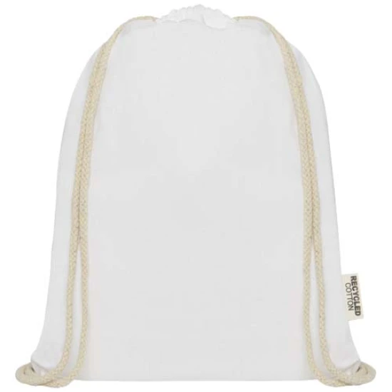 The Oregon drawstring bag made from 100% GRS certified recycled cotton is easy to hand out as a gift to promote your brand or marketing campaign. This lightweight bag is budget-friendly, easy to carry on the back or on the shoulder and offers enough space for adding a logo or other messages. The drawstring makes it easy to open and close, and the 140 g/m² cotton material is strong and durable. Large main compartment with cotton drawstring closure. Resistance up to 5 kg weight. GRS certified recycled cotton, 140 g/m2.
