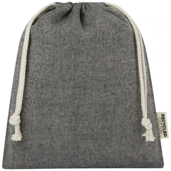 Gift bag made of GRS certified recycled cotton with cotton drawstring closure. Ideal for gifting or storing items. Size: 25 x 30 cm. Recycled cotton.