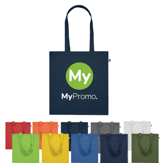 Organic cotton shopping bag with long handles and gusset. 220 gr/m².