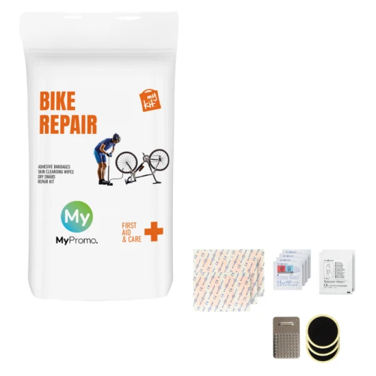 Bike repair kit | Recycled kraft paper | 19 pcs | Meet all EU regulations | Full-colour print