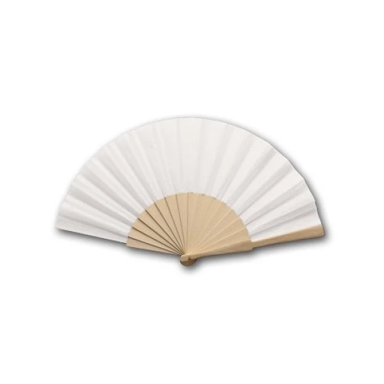 Fan made of natural wood and polyester fabric in different colours. Presented in individual box.