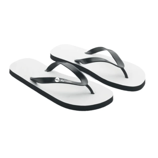 Sublimation beach slippers with PVC straps. Sole made of rubber with polyester top cloth. Size 44-46. Item can only be ordered printed.