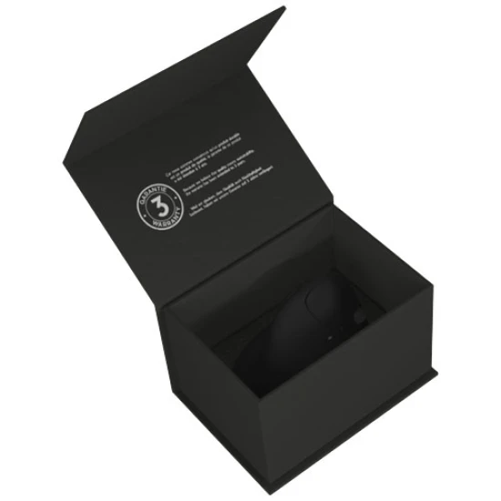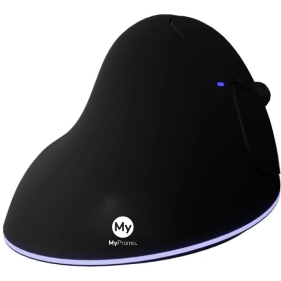 Rechargeable wireless mouse (10.8 x 6.2 x 3 cm) with antibacterial treatment and light-up logo. The mouse can be used for up to 8 hours on a single charge. Ergonomic design that helps reduce hand strain and fatigue over a long period of time. With a 66° angle, palm and arm distortion is reduced. The printed light-up logo is bright when the mouse is charged, and darkens when there is only 20% battery capacity left. 0.70 metre USB charging cable made from recycled PET included. When the battery is completely discharged, the mouse can still be used with the charging cable. Packed in a black gift box (13.5 x 9.8 x 9 cm) with magnetic closure. Includes 3 years warranty. ABS Plastic, Rubber, Recycled PET Plastic.
