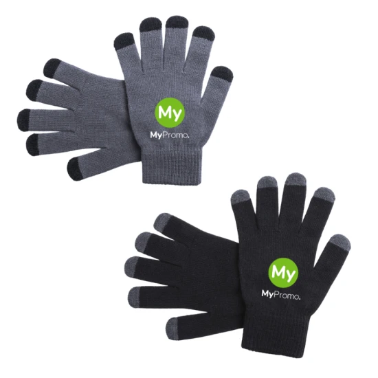 Pair of smooth and warm gloves for touch screen devices. Acrylic finish.