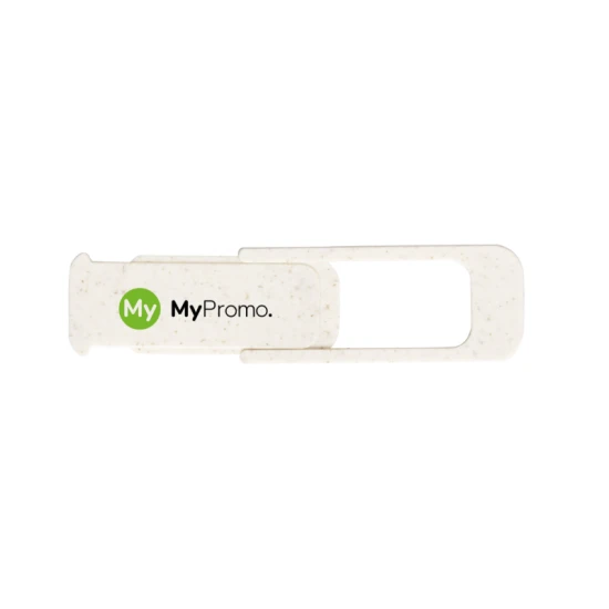 Anti spy webcam cover in ecological wheat straw plastic with sliding cover and adhesive back.