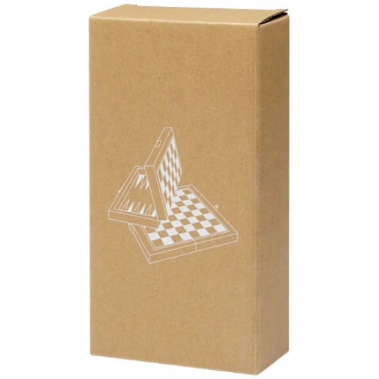 The Mugo wooden 3-in-1 game set is a perfect companion for game enthusiasts and families seeking versatile entertainment. This set combines the timeless and classic games of chess, checkers, and backgammon, providing hours of fun and strategic challenges. Crafted from responsibly sourced premium pine wood, the box has a natural and rustic charm. Its sturdy construction ensures long-lasting durability, while the iron hinges and lock add a touch of elegance and secure the contents inside. Additionally, the set includes two dice made of high-quality melamine. Whether strategizing in chess, competing in checkers, or engaging in the tactical gameplay of backgammon, this set offers endless possibilities to make lasting memories. Delivered with a kraft paper gift box and an instruction manual. Wood.