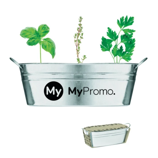 Zinc plated plant tub with a selection of 3 herbs. Basil, thyme and parsley seeds including garden compost. Made in EU.