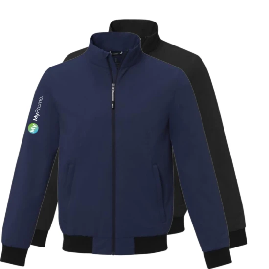 Flat knit rib cuffs and bottom hem. Storm flap with chinguard. Front seam details. Reversed centre front coil zipper. Front welt pockets with zipper. Rubber branded hangerloop. Heat transfer main label for tagless comfort. 240T cotton feel twill with TPU clear lamination of 100% Polyester, 188 g/m2, Lining, 210T taffeta of 100% Polyester, 60 g/m2.