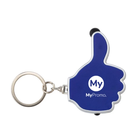 Steel keyring with a stylus pen and a button activated LED light. Suitable for capacitive screens. Batteries included.