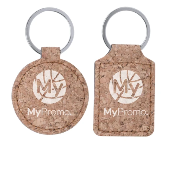 Keyring made of natural cork available in squared and round designs.