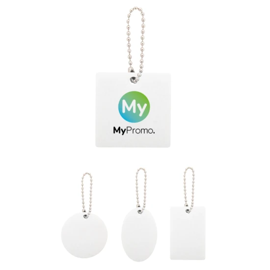 Custom made, RPET felt keyring with metal chain and full colour printing. Price includes sublimation printing on one side. MOQ: 100 pcs.