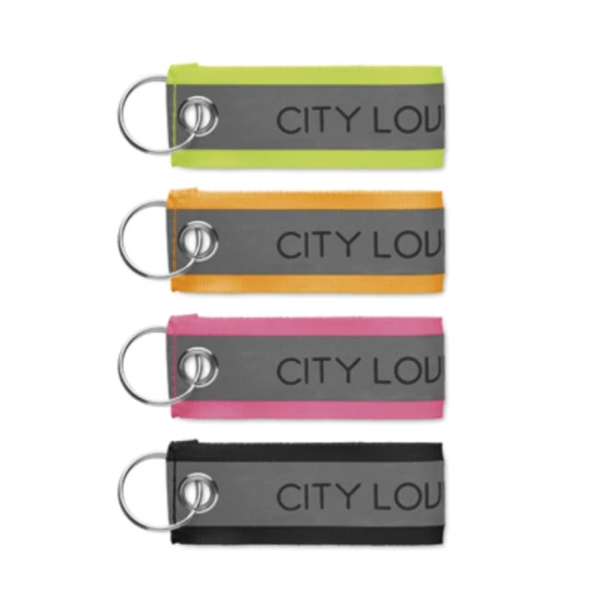 Reflective key tag | Polyester | 8.5x3cm | Neon colours | With metal ring | Print on both sides