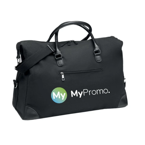Weekend bag in 340 gr/m² canvas with recycled PU details. Lining is in RPET 210D. Strong adjustable and detachable straps included. Perfect hand luggage size.