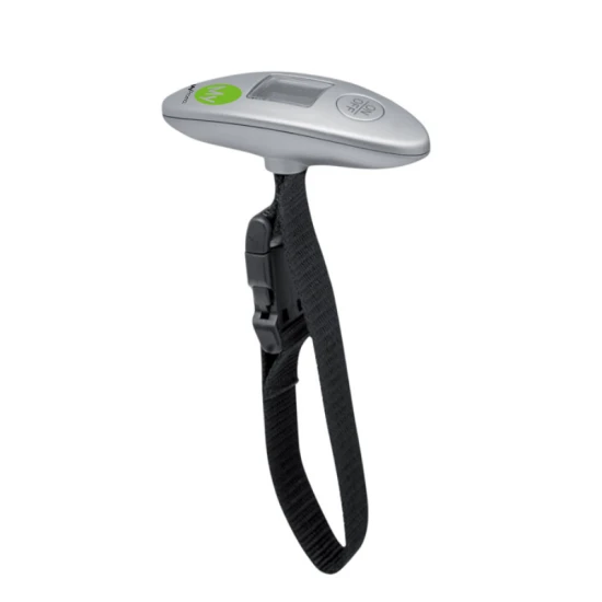 Luggage scale in ABS casing. Maximum capacity measure: 40 kg. Unit measure in kilogrammeme or pounds. Powered by 1 cell battery included. Individual packaging in silver carton box.