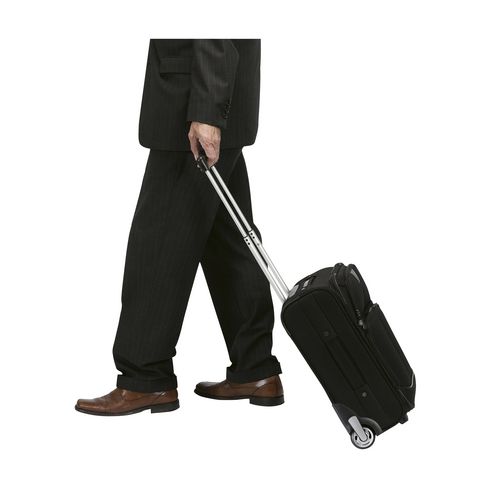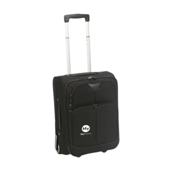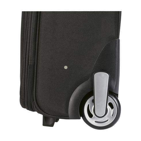 Trolley made of 1000D polyester with a spacious main compartment, double zipper, various pockets, 2 wheels, and an extendable aluminum handle. Contents approx. 22 liters.