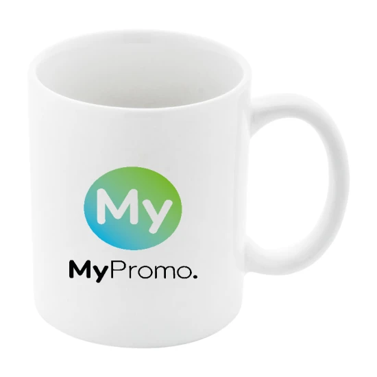 Dishwasher safe, white ceramic mug for sublimation printing, 300 ml. Price includes printing. MOQ: 100 pcs.