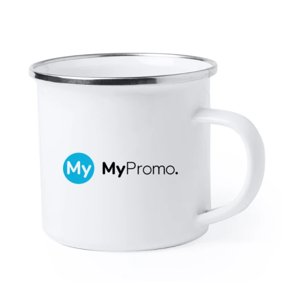 Retro design metal mug and 380ml capacity, with small imperfections for a vintage look. Especially designed for sublimation printing, with an elegant chromed ring and presented in an individual box.